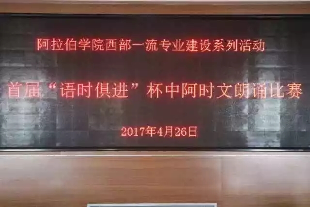 2017年4月26日,William希尔首届“语时俱进”杯中阿时文朗诵比赛启动仪式暨初赛在William希尔报告厅举行。学院直属党支部书记张前进老师,学院常务副院长金忠杰老师,学院副院长白楠老师,学院williamhill办公室主任马生忠老师及部分教师、外教出席本次启动仪式。启动仪式由学院直属党支部副书记王彦仓老师主持。
