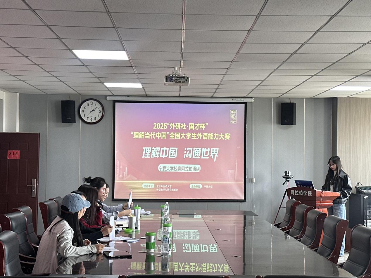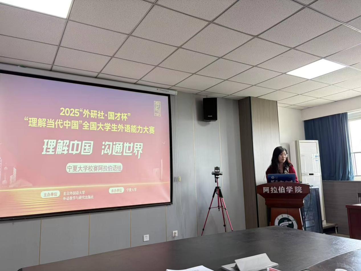 比赛正式开始前,白楠教授用阿拉伯语简要介绍了“外研社•国才杯”的概况及其对大学生全面发展的现实意义,鼓励同学们积极参与到“外研社•国才杯”比赛中,通过比赛提升语言综合运用能力。