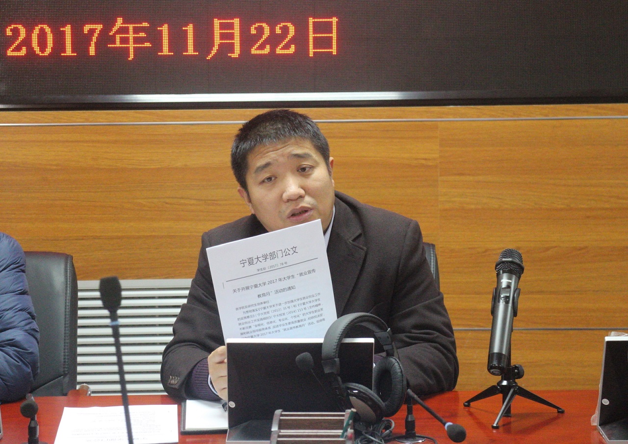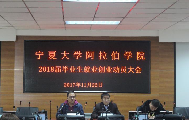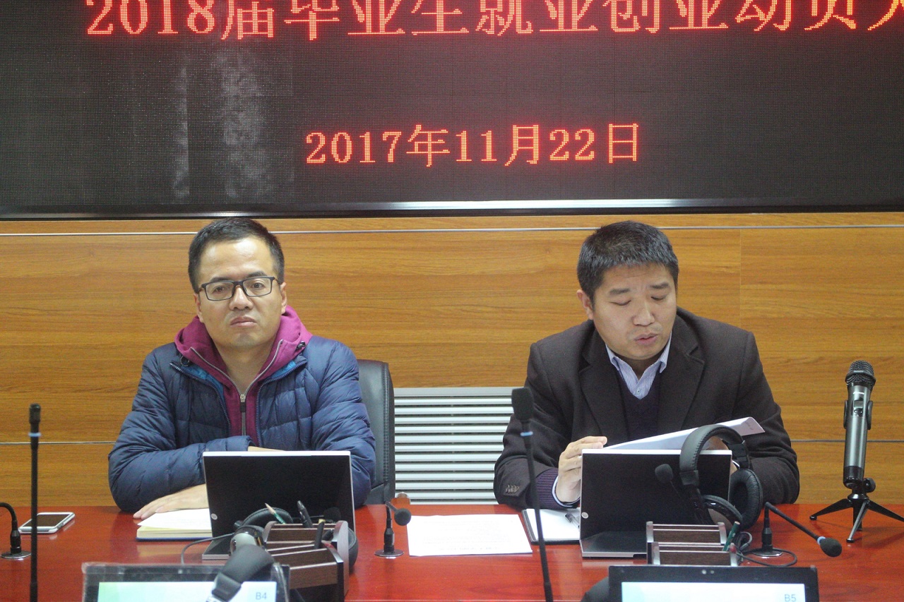 2017年11月22日下午,William希尔在学院报告厅召开2018届毕业生就业创业动员大会。学院党总支副书记赵永军、williamhill办公室金宁洋老师与全体2018届毕业生参加会议。williamhill办公室主任马生忠主持会议。