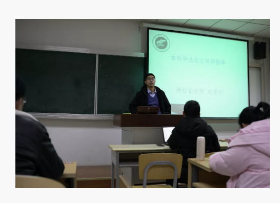 之后,马成文老师从毕业论文的时间安排和相关要求,结合自己多年来组织毕业论文相关工作的经验,对毕业论文写作过程中常见的问题进行了提醒。他提醒同学们要把握好论文写作的几个关键时间点,吃透学院发的论文格式手册,并对阿语摘要的规范性作出具体要求。他要求同学们在论文写作过程中要认真对待,尽量在寒假完成初稿,同时也要密切联系自己的导师,及时交流自己写作过程中遇到的问题。