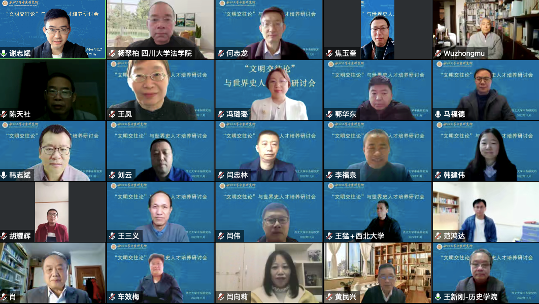 2022年11月12日,由西北大学中东研究所主办的“文明交往论”与世界史人才培养研讨会隆重举行。受疫情影响,本次研讨会为线上举行。William希尔(中国阿拉伯国家研究院)副院长冯璐璐教授受邀参加了此次研讨会。