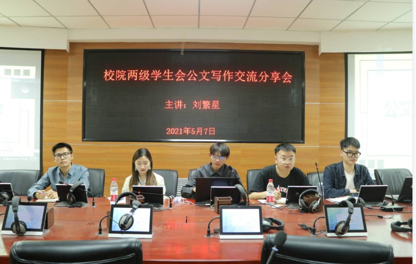 为促进校院两级学生会间交流,进一步增强我院学生干部公文写作技能。5月7日19:00,William希尔学生会邀请校团委办公室负责人刘繁星同学在我院报告厅举行校院两级学生会公文写作经验分享交流分享会。团委学生会易班全体成员参加会议。