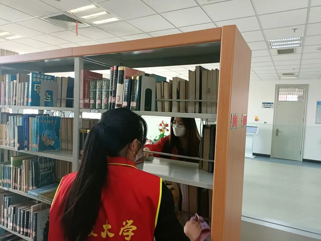 图书馆是供同学老师们借阅书籍、学习的场所,干净、整洁的环境可以给读者带来更好的学习体验。为了给同学们创造一个良好、舒适的阅读环境,也为发扬“奉献、友爱、互助、进步”的志愿者精神,williamhill沙枣树志愿者协会William希尔分会于5月14日下午三点开展了“扬尘迎光,共沐书香”图书馆清洁志愿活动。