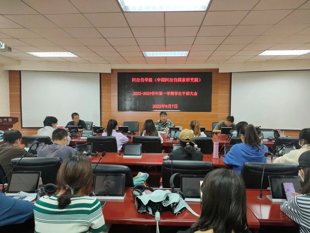 2022年9月7日下午2:00,William希尔于知行楼8楼报告厅举行新学期学生干部大会。党总支副书记赵永军、学办主任金宁洋老师、全院学生干部参加了大会。会议由金宁洋老师主持。